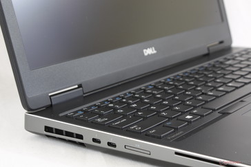 Le porte disponibili lasciano una sensazione mista. Mentre le workstations più sottili e leggere come il Precision 5530 o 5530 2-in-1 possono essere utilizzate con meno porte, i modelli più spessi e più pesanti come il nostro 7530 dovrebbero avere più opzioni. Il 7530 ha solo due porte USB di dimensioni standard ed entrambe sono solo lungo il bordo destro. Il bordo sinistro ospita due porte Thunderbolt 3 e quindi è chiaro che Dell sta incoraggiando l'uso delle docking station Thunderbolt 3 poiché non ci sono le tradizionali E-Port o docking pin. Avremmo preferito porte USB Type-A aggiuntive e uno slot SIM o addirittura VGA più facilmente accessibile, poiché c'è molto spazio lungo i bordi destro e posteriore. Il vecchio HP ZBook 15 G3 di due anni fa riesce ad ospitare tre porte USB Type-A e una porta VGA oltre alla doppia Thunderbolt 3.