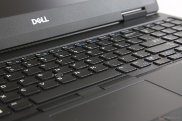 La tastiera retroilluminata (~34,4 x 10,3 cm) rimane essenzialmente identica alla tastiera del Precision 7510. Questo non è male, comunque, dato che abbiamo trovato che la tastiera del 7510 è una delle migliori per le sue dimensioni. La corsa è più profonda che sull'XPS 15 con un rumore fermo ma relativamente silenzioso. I tasti NumPad non sono di dimensioni ridotte a differenza di molti altri computer portatili da 15 pollici.