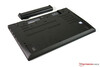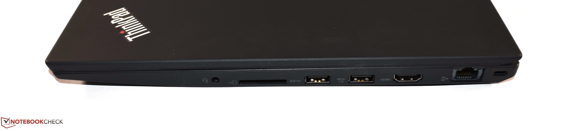 Come per il T580, sono state apportate alcune modifiche alla selezione delle porte. Lenovo ha scelto un nuovo percorso per le sue porte docking: Invece di posizionare un connettore sul fondo dell'unità base, ora abbiamo una porta di aggancio sul lato. Consiste di due porte USB C, una delle quali supporta Thunderbolt 3, e un connettore mini Ethernet proprietario. La porta USB C aggiuntiva è disponibile al costo di una porta USB A.