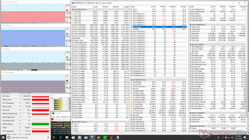 In idle sulla scrivania assorbirà tra i 12 W e 19 W risultando quasi altrettanto efficiente come il concorrente HP ZBook 17 G5 o Lenovo ThinkPad P73. Forse non sorprende che i risultati complessivi non siano così diversi da quelli di un laptop con alimentazione RTX 2060 come lo Schenker XMG Neo 17, dato che la Quadro RTX 3000 è derivata dall'RTX 2060.