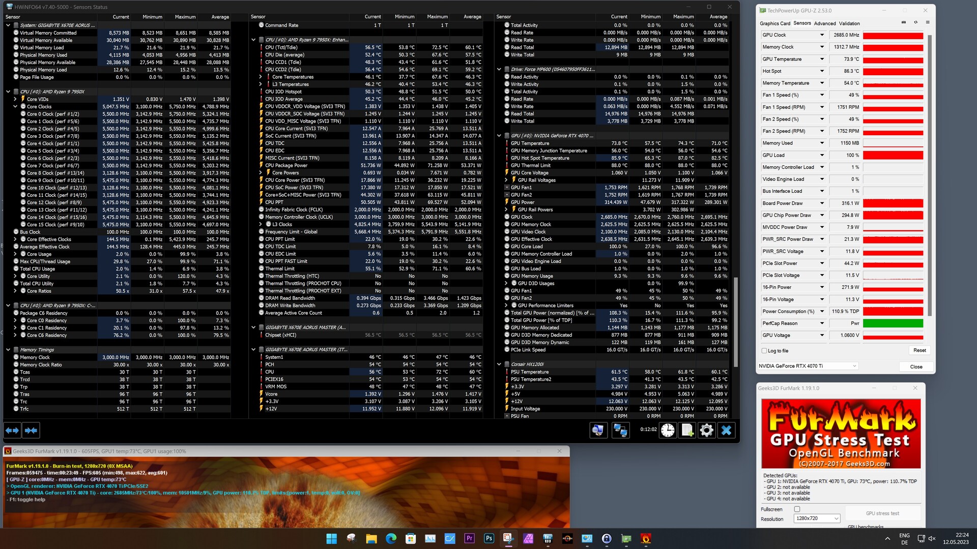 MSI Radeon RX 6950 XT Gaming X Trio, AMD Ryzen 9 7950X