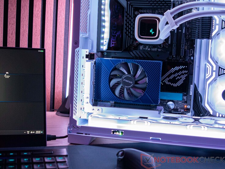 Il fatto che Sparkle Arc A380 Elf riceva l'alimentazione solo attraverso lo slot PCI Express rende chiaro che si tratta di una scheda grafica efficiente. Nel nostro confronto, il sistema di prova basato su Sparkle Arc A380 Elf è di gran lunga il più efficiente. Le nostre misurazioni mostrano solo 145 watt come valore medio durante lo stress test, anche se raggiunge circa 143 watt durante il gioco. Nel nostro confronto di efficienza, questo è persino sufficiente per superare l' Acer Predator BiFrost Arc A750 OC e ASRock Arc A580 Challenger OC.