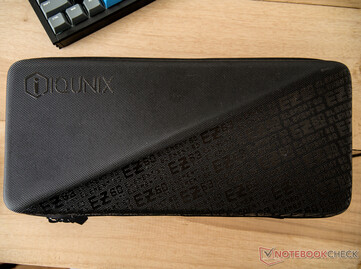 Iqunix EZ63/EZ60 si presenta con uno stile di imballaggio molto poco ortodosso e l'intero pacchetto grida qualità, soprattutto se confrontato con il modello di prezzo simile Wooting 80HE che abbiamo recensito l'anno scorso. Invece di una scatola, l'EZ63 viene fornito in una custodia rigida completa di tasche interne per gli accessori e di un piccolo sportello per proteggere la tastiera dagli accessori. La custodia si chiude con due robuste cerniere e dispone di una robusta maniglia sul bordo superiore per facilitare il trasporto.