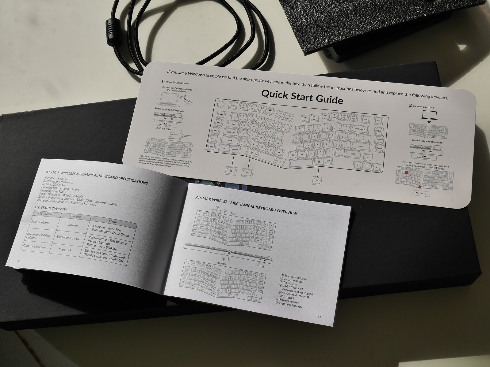 L'esperienza di unboxing di Keychron K15 Max è a dir poco eccellente, grazie alla scatola di cartone di alta qualità e alla sensazione di solidità delle periferiche. Sembra sicuramente un passo avanti nella qualità rispetto a prodotti come l'Epomaker TH40 che abbiamo recensito di recente Epomaker TH40 che abbiamo recensito di recentela cui esperienza di unboxing non è stata davvero soddisfacente.