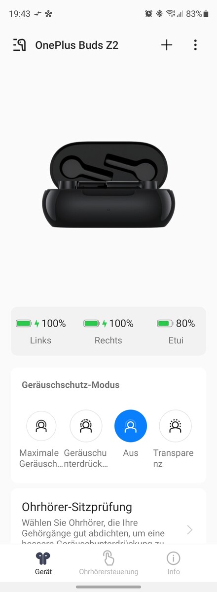 L'applicazione può essere utilizzata per configurare i due sensori touch, caricare gli aggiornamenti del firmware o cercare gli auricolari. Un equalizzatore non è ancora offerto, e l'Audio ID è anche riservato al Modello Pro. Tuttavia, le modalità di cancellazione del rumore possono essere regolate anche con le Buds Z2.