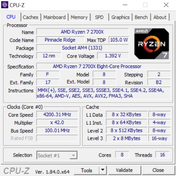 | Ryzen R7 2700X | 8-16 | 3.7 GHz | 4.3 GHz | up to 7 % | 16 MB | 105 Watts | $329 |