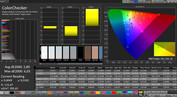 Siamo rimasti soddisfatti della deviazione cromatica relativamente bassa del nostro device di test, rilevata con lo spettrofotometro e il software CalMAN. Ci sono diverse impostazioni per regolare il bilanciamento del bianco, anche se in realta' crediamo che le impostazioni di fabbrica siano gia' molto buone. La scala dei grigi, tuttavia, mostra una leggera dominante blu in questa modalita'.