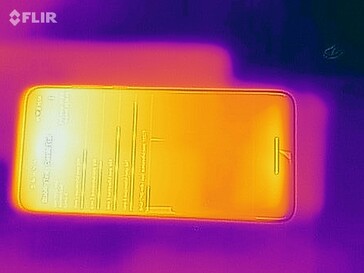 Sotto carico, il Motorola Moto G8 ha raggiunto la temperatura massima di 41,6 °C nella parte superiore sul lato posteriore del telefono. Le temperature di superficie nella parte anteriore erano un po' più basse. Il telefono è diventato così notevolmente caldo, ma non abbastanza caldo da causare problemi, e dovrebbe rimanere abbastanza fresco anche in estate. Quando è stato sottoposto a carichi bassi o molto bassi, le temperature di superficie sono aumentate molto leggermente.