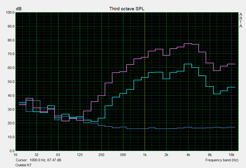 Il K7 ha un diffusore mono sorprendentemente buono. La qualità del suono è chiara e ricca, con buoni toni medi e anche toni bassi passabili. L'altoparlante nel nostro dispositivo di prova raggiunge un massimo di 84,7 dB(A), che dovrebbe essere abbastanza alto nella maggior parte delle situazioni. Nel complesso, l'altoparlante è abbastanza buono per la riproduzione musicale, che è una rarità per un dispositivo da 190 € (~ $216).