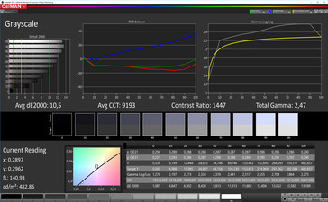 ΔE Greyscale Calman: 10.5 | ∀{0.09-98 Ø5}
