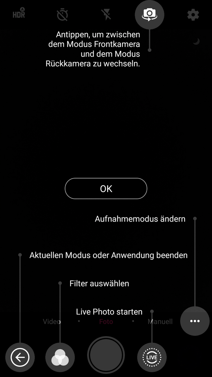 Il sensore 20-MP è in grado di scattare foto con una risoluzione fino a 5168x3876 pixel nel formato 4:3 e 5120x2880 pixel nel formato 16:9. Sono disponibili molte impostazioni di regolazione per i fotografi che usano lo smartphone. Iniziando con diversi filtri e continuando con HDR, varie modalità di immagine, velocità dell'otturatore e bilanciamento del bianco, è possibile regolare molte impostazioni singolarmente.