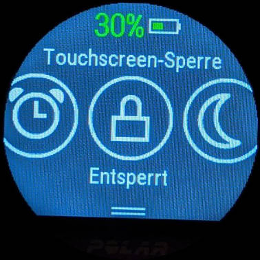 È possibile tornare alla schermata principale dell'orologio utilizzando il pulsante in acciaio inossidabile. Il pulsante può anche aprire un menu con funzioni aggiuntive come timer, cronometro e programma di respirazione. In modalità di esercizio, il pulsante avvia e termina anche l'allenamento. Polar non offre informazioni meteorologiche, la riproduzione di musica o la funzione "Trova smartphone" sull'unità.