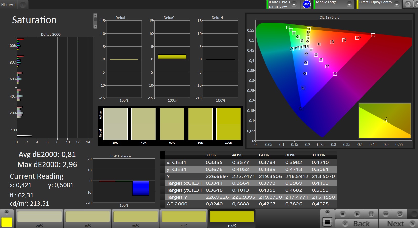 | Colorchecker dE 2000 max. * | 3.06 | 2 35% | 1.6 48% | 2.4 22% | 4.7 -54% | 3.7 -21% |