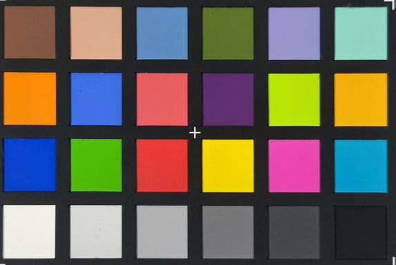 Nel nostro laboratorio di prova, la fotocamera principale dimostra di essere in grado di catturare i colori in modo abbastanza preciso in condizioni di luce ottimali. Nelle tonalità di colore rosso e verde brillanti, le deviazioni dall'ideale sono leggermente maggiori. Il grafico del test è nitido e riprodotto completamente. Tuttavia, questo cambia in presenza di una luce residua di 1 Lux, in quanto la precisione del colore si perde e si riescono a distinguere solo i contorni del grafico di prova.