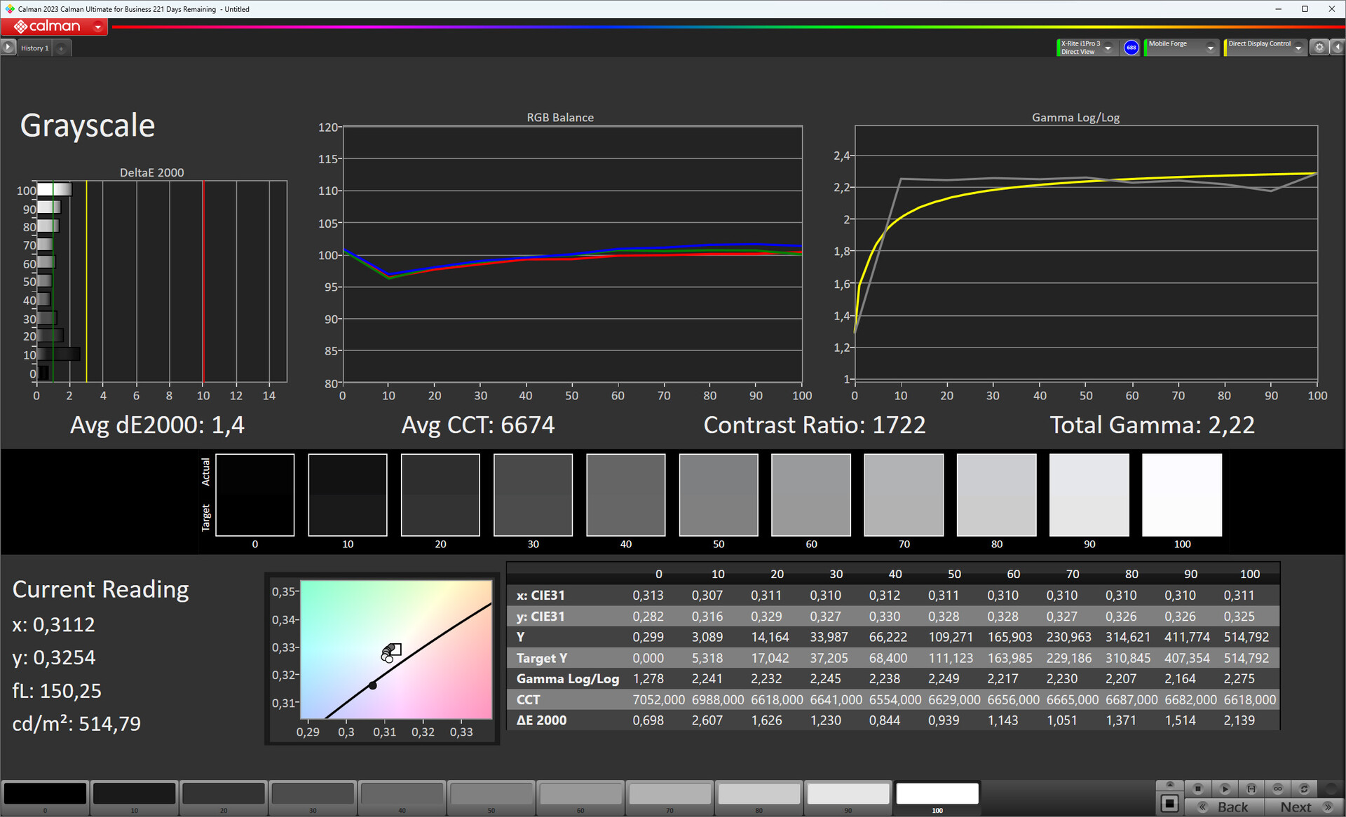 ΔE Greyscale Calman: 1.4 | ∀{0.09-98 Ø5}
