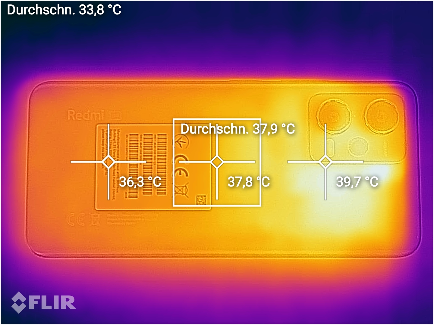 Con un valore di picco di 40,3 °C, lo Xiaomi Redmi Note 12 5G rimane relativamente fresco sotto carico permanente. Il basso sviluppo di calore dello Snapdragon 4 Gen 1 garantisce inoltre che il SoC possa praticamente sempre fornire prestazioni complete nell'uso quotidiano. Ciò è ulteriormente confermato dallo stress test di GFXBench.
