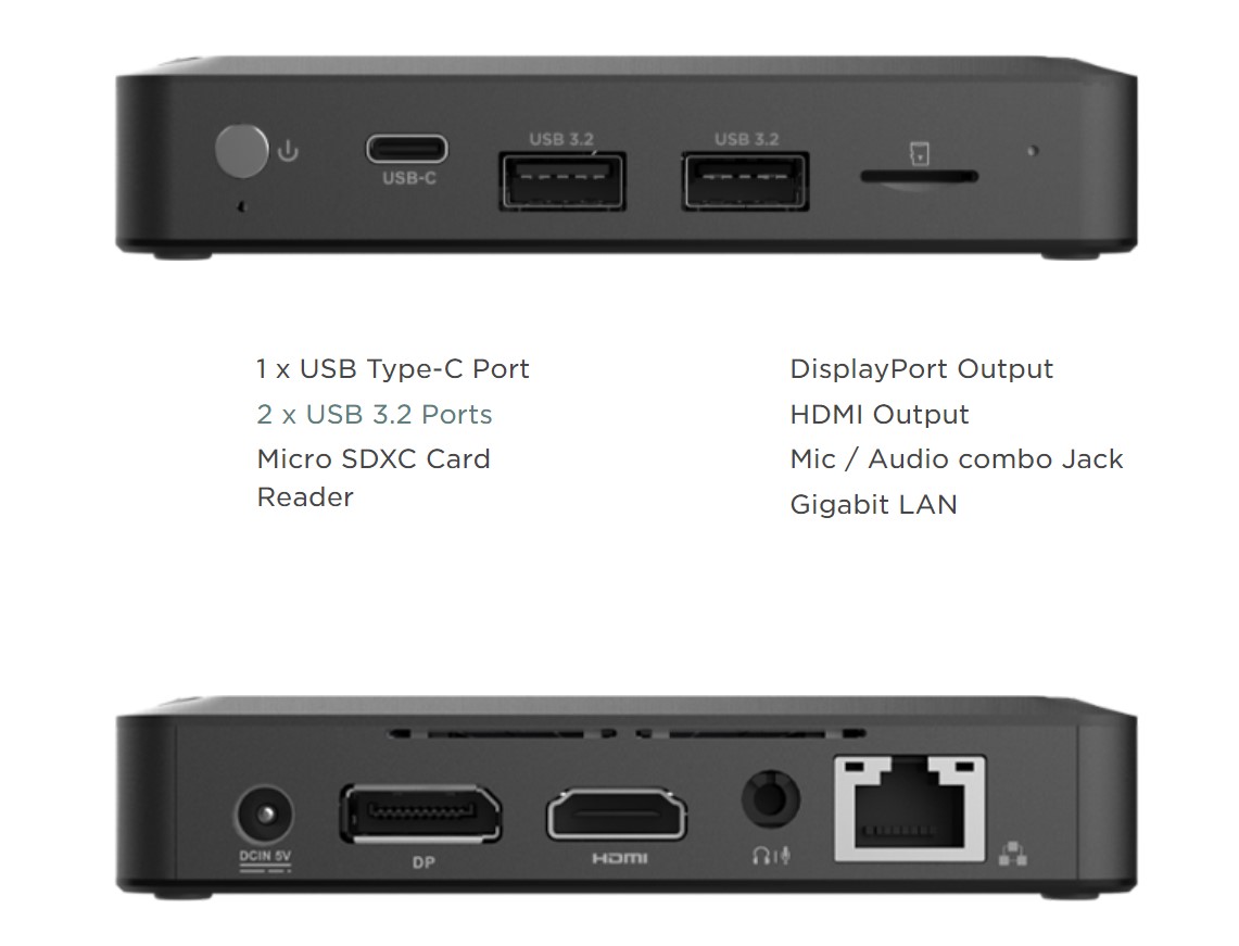Nonostante le dimensioni ridotte, Zotac Zbox pico PI430A contiene tutti i connettori necessari, nonostante le sue restrizioni. Sono presenti tre porte USB 3.2, una delle quali è conforme al Type-C. Tuttavia, il dispositivo non può essere alimentato dal connettore Type-C. Sono presenti un lettore di schede microSD e porte HDMI (2.0) e DisplayPort (1.4) per collegare i monitor.