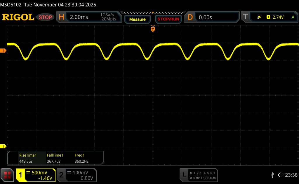 Il pannello OLED sfarfalla a 360 Hz in tutti i livelli di luminosità che abbiamo misurato. Allo stesso tempo, viene utilizzata una frequenza di oscuramento piuttosto elevata di 1.428 Hz (1.440 Hz secondo Huawei) per mitigare gli effetti negativi dello sfarfallio PWM per gli utenti sensibili.