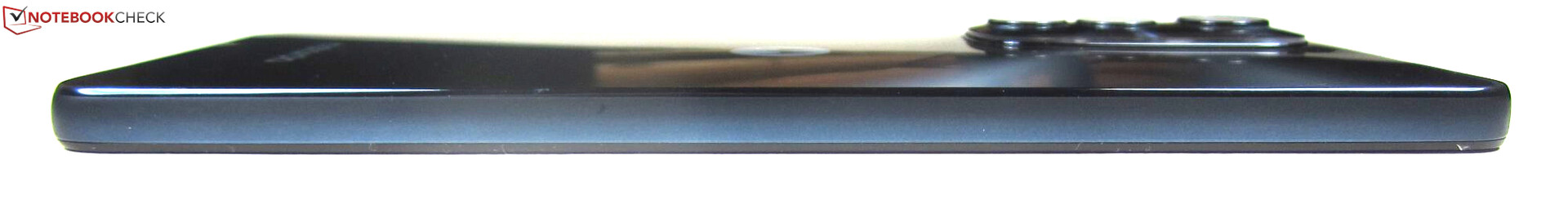 Con uno spessore di 6,8 millimetri, l'Edge 30 è più sottile di due millimetri rispetto al suo predecessore. Ma questo non include l'unità della fotocamera, che sporge di qualche millimetro in più dalla scocca rispetto all'Edge 20di conseguenza, l'Edge 30 oscilla avanti e indietro sul tavolo, cosa che non può essere completamente eliminata con la cover protettiva in dotazione.