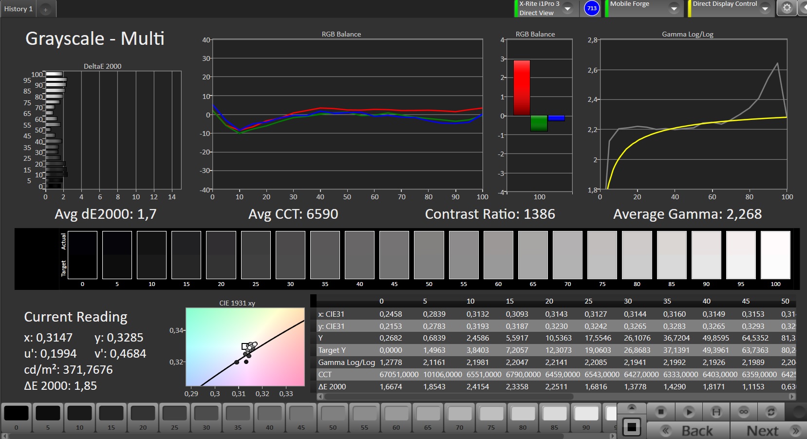 ΔE Greyscale Calman: 1.7 | ∀{0.09-98 Ø5}