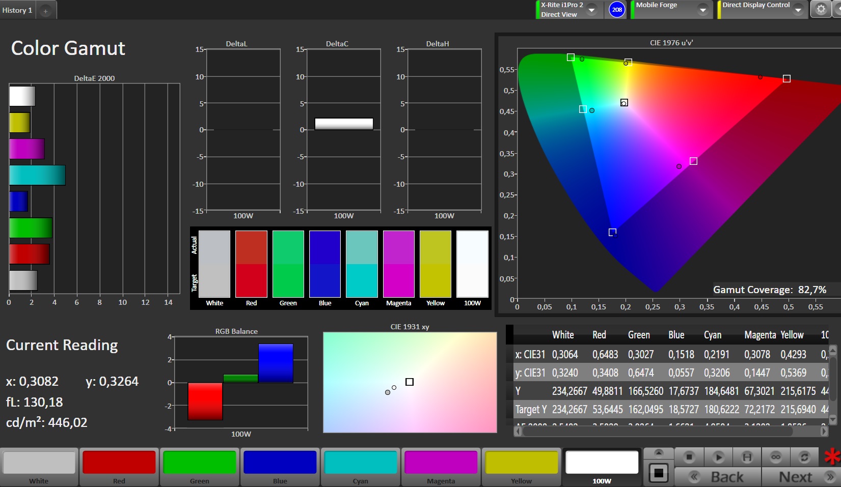 | Colorchecker dE 2000 * | 2.67 | 3.39 -27% | 1.17 56% | 2.53 5% | 0.9 66% | 1.88 30% |