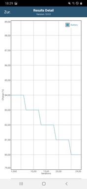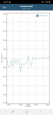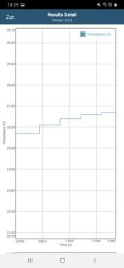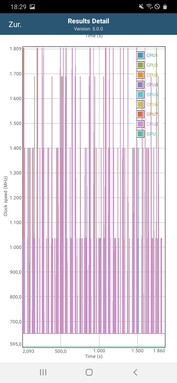 Più interessante è lo sviluppo di calore all'interno dell'A20s. Per verificare il comportamento del calore residuo dello smartphone Samsung sotto carico sostenuto, utilizziamo il test della batteria dell'app GFXBench. Il test di Manhattan 3.1 mostra che il conteggio dei telai rimane stabile con l'aumento del carico, quindi è improbabile che le prestazioni scendano sotto carico.
