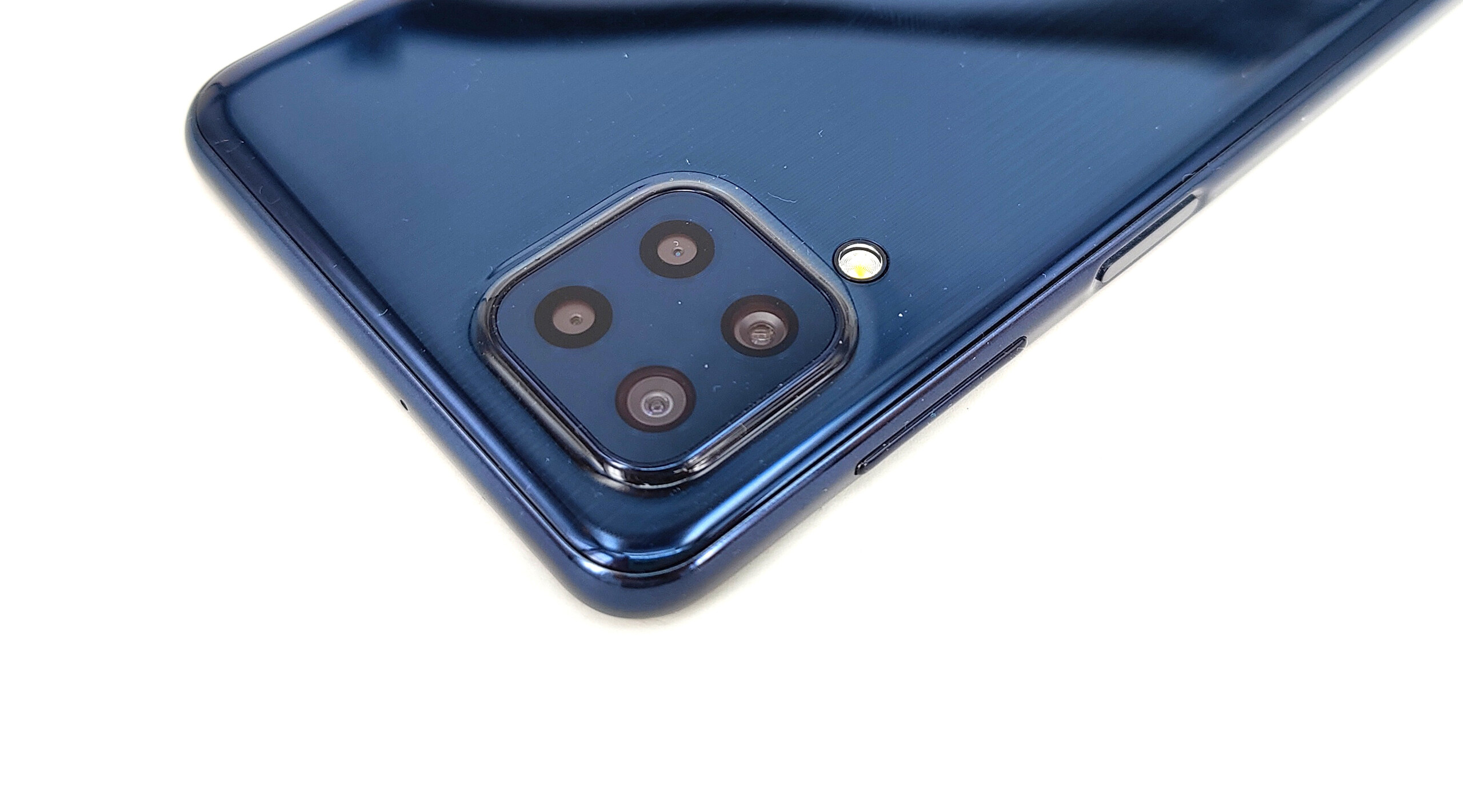 Con le sue strisce gessate sul retro e le colorate rifrazioni di luce della nostra unità di prova blu scuro, il Galaxy M32 sembra un aggiornamento rispetto al predecessore. Il sensore di impronte digitali si è spostato sul lato, così che il retro è ora interrotto solo dal modulo della fotocamera. La versione scura continua ad essere molto suscettibile alle impronte digitali a causa della superficie lucida
