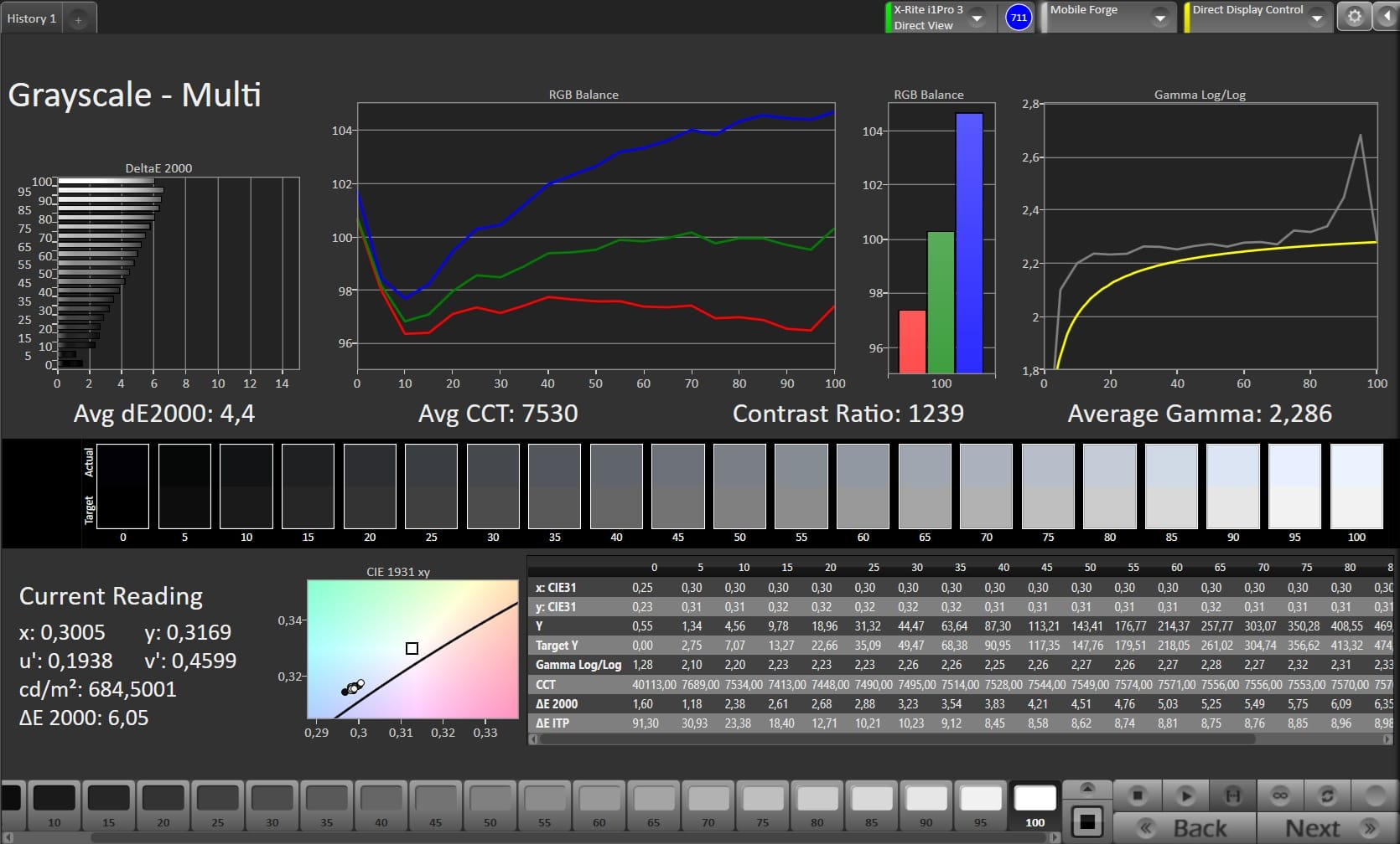 (±) | linearità dei medi adeguata (7.6% delta rispetto alla precedente frequenza)