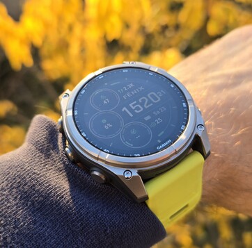 Nelle versioni con pannello AMOLED, il resistente vetro zaffiro può essere sostituito da Corning Gorilla Glass (RRP da 1.000 euro). Mentre il Fenix 8 con display OLED mostra colori più vivaci e cambi di immagine più fluidi, il display MiP consuma meno energia. Garmin ci ha fornito la versione con schermo MiP nella versione più grande come dispositivo di prova.