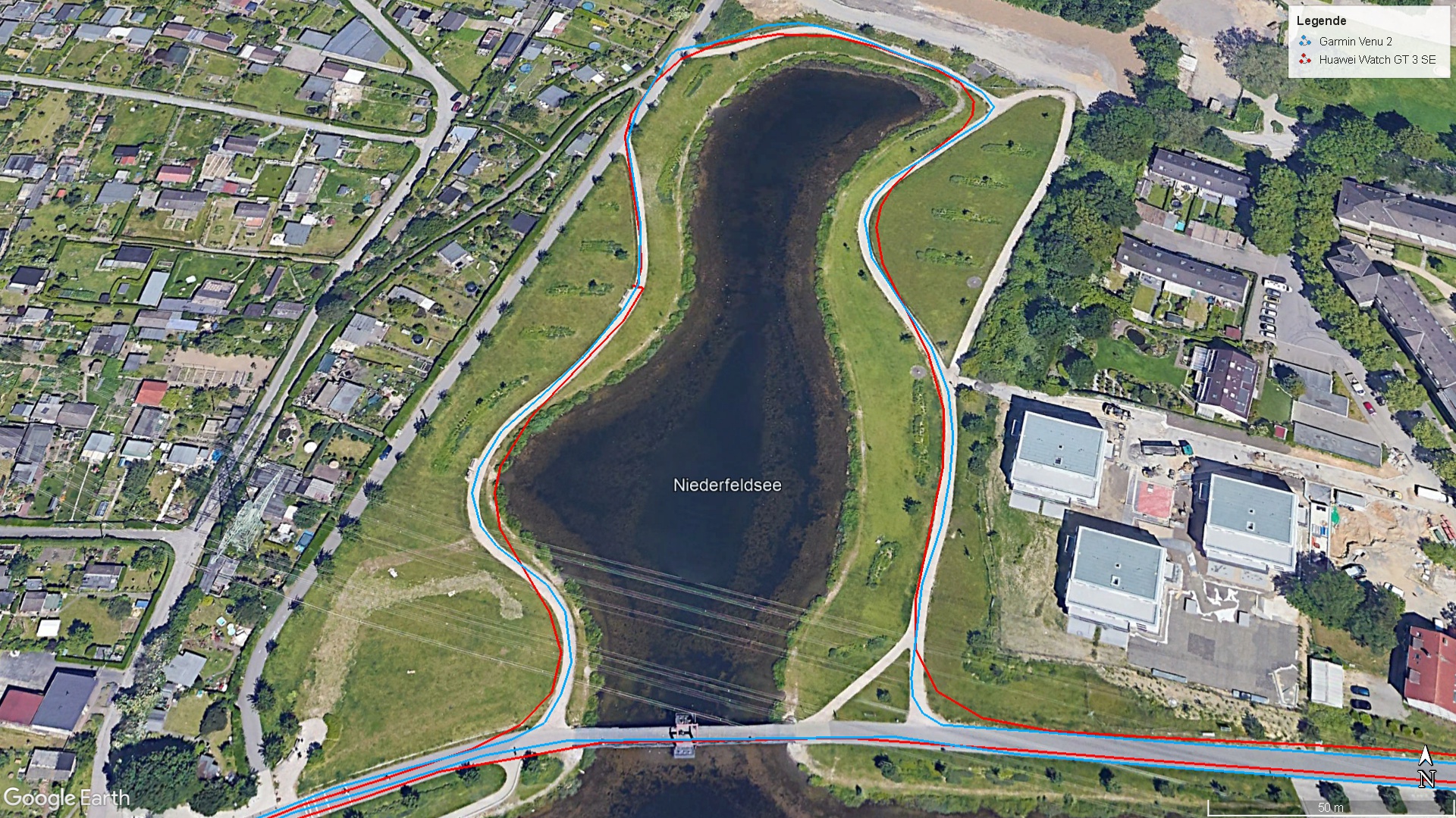 Secondo Huawei, l'indossabile è dotato di un chip di posizionamento GNSS ad alta precisione con cinque sistemi supportati. Come per la misurazione della frequenza cardiaca, tuttavia, il rilevamento GPS del Huawei Watch GT 3 SE non è così preciso come avremmo voluto. In questo caso, compete con il Garmin Venu 2 come modello di riferimento.