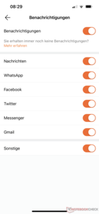 Lo smartwatch segnala anche le notifiche sullo smartphone in pochi secondi. Tuttavia, è possibile leggere solo le prime righe delle e-mail e le emoji e simili non vengono visualizzate correttamente. Con l'app è possibile specificare quali messaggi devono essere sincronizzati con l'orologio e quali no. Nel nostro test pratico non ci sono stati problemi.