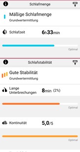 Lo stato ANS esprime quanto bene il sistema nervoso autonomo (ANS) ha riposato durante la notte, che può essere influenzato da fattori come lo stress, l'esercizio fisico in tarda serata, la malattia o il consumo di alcol. L'analisi si basa sulla frequenza cardiaca, la frequenza respiratoria e la variabilità della frequenza cardiaca delle prime ore dopo l'addormentamento e le confronta con le notti precedenti.