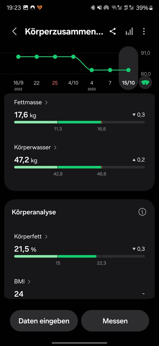 I valori e le analisi sono forniti per le singole aree. Il software - Samsung lo definisce AI - lo utilizza per creare un valore complessivo. Questo viene impostato in relazione al giorno precedente e viene formulata una raccomandazione per la giornata.