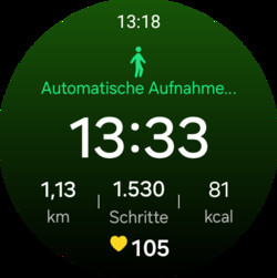 Il riconoscimento automatico degli allenamenti è molto ben fatto. Nel test ha funzionato in modo affidabile e rapido e non sono andati persi minuti di allenamento. Anche la pausa e la ripresa automatica delle sessioni di allenamento funzionano senza problemi per i vari sport.