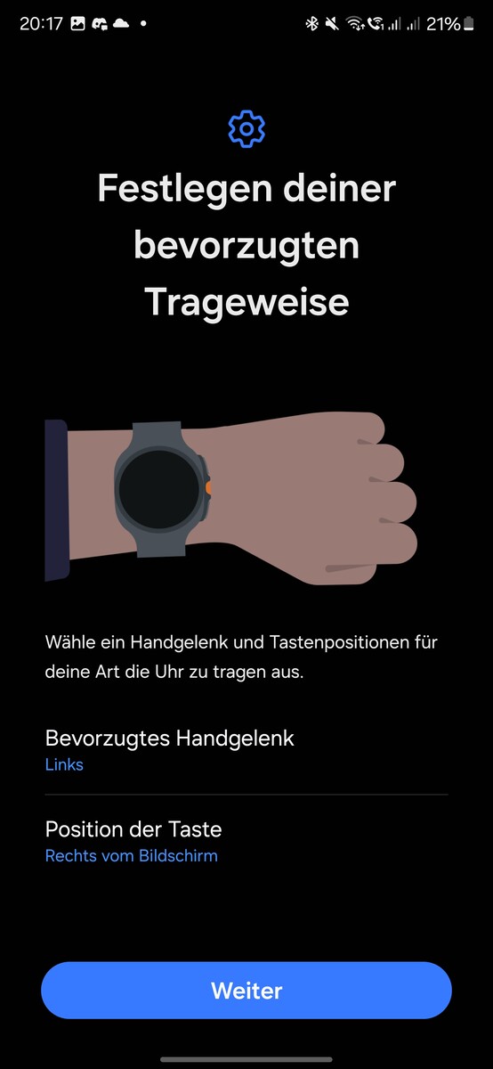 Il processo di configurazione richiede molto tempo e si svolge interamente sullo smartphone. Dopo l'associazione e l'aggiornamento dell'app Wear, è necessario collegare un account Google. Segue l'accesso al Samsung Smart Switch per il backup dei dati, l'abilitazione di varie funzioni, la lettura delle notifiche e l'introduzione di nuove funzioni. La funzione del nuovo pulsante rapido può essere definita durante la configurazione.