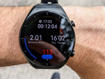 Il Watch S1 offre 117 diverse modalità di allenamento. Non le abbiamo testate tutte, ma abbiamo fatto jogging, ciclismo e nuoto con l'orologio. Se lo si desidera, l'orologio può essere impostato per rilevare automaticamente (e avviare la registrazione) quando l'utente corre o cammina. Per tutte le altre attività sportive è necessaria l'attivazione tramite il menu Sport. La distanza percorsa viene registrata tramite GNSS ed è presente un barometro per la misurazione dell'altitudine. Per la corsa, lo smartwatch fornisce informazioni su passo, frequenza cardiaca, passi e velocità di falcata. I dati totali sono anche suddivisi in dati più specifici per i singoli chilometri. Inoltre, l'orologio vibra a ogni chilometro completato e fornisce un aggiornamento dello stato. Mancano tuttavia le stime dei periodi di allenamento e le raccomandazioni per i periodi di riposo. Il lato positivo è che il Watch S1 rileva automaticamente le brevi pause durante la corsa e mette in pausa l'allenamento, che poi continua automaticamente quando si ricomincia a correre. Purtroppo, lo smartwatch non ricorda la vista selezionata nel menu di allenamento, per cui l'utente deve passare nuovamente il dito sulla vista desiderata ogni volta che la presentazione si spegne.