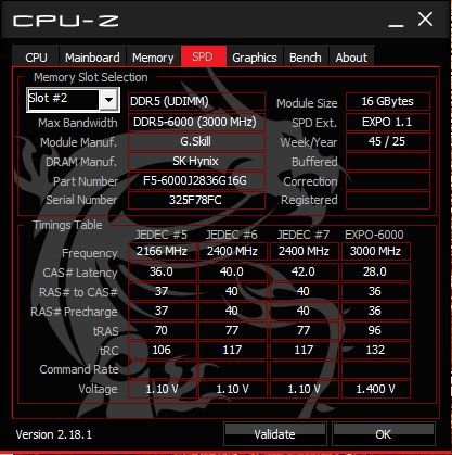 - 2x 16 GB di RAM G.Skill Trident Z5 Neo RGB DDR5-6000 in esecuzione nel profilo EXPO-6000 con temporizzazioni 28-36-36-96 a 1,40 V