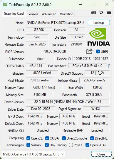 | Acer Nitro v 17 (ANV17-41-R4CJ) R7 260, GeForce RTX 5070 Laptop | HP Omen 17z-db100 Ryzen AI 7 350, GeForce RTX 5070 Laptop | Lenovo LOQ 17IRX10 i7-14700HX, GeForce RTX 5070 Laptop | MSI Crosshair A17 HX D8WGKG R9 8940HX, GeForce RTX 5070 Laptop | MSI Katana 17 HX B14WGK i7-14650HX, GeForce RTX 5070 Laptop | Alienware 16X Aurora, RTX 5070 Ultra 9 275HX, GeForce RTX 5070 Laptop | |