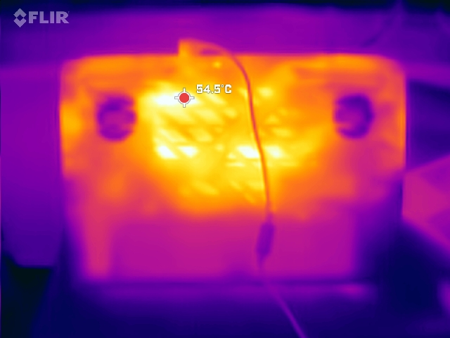 (-) Il lato inferiore si riscalda fino ad un massimo di 51 °C / 124 F, rispetto alla media di 43.3 °C / 110 F