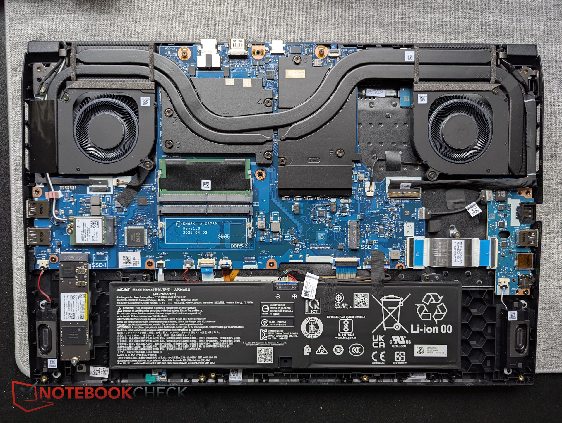 Sotto carico di gioco, Nitro V 17 consuma sensibilmente meno energia rispetto ai concorrenti leggermente più potenti. L'adattatore di alimentazione da 135 W incluso sottolinea ulteriormente l'attenzione di Acer per un gioco silenzioso ed efficiente.