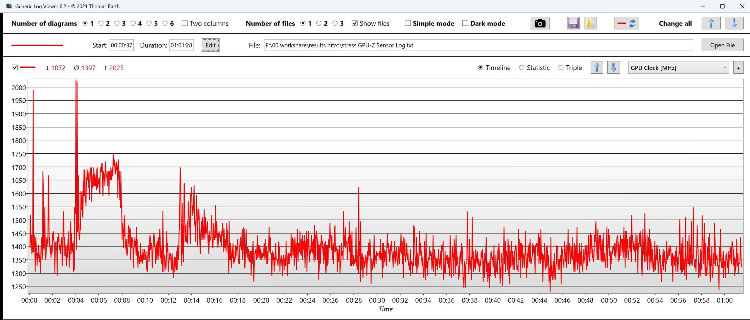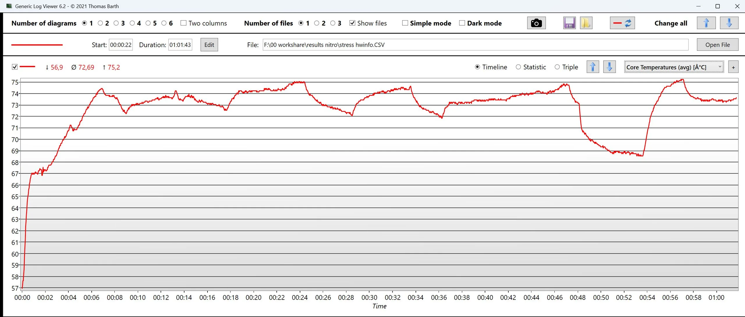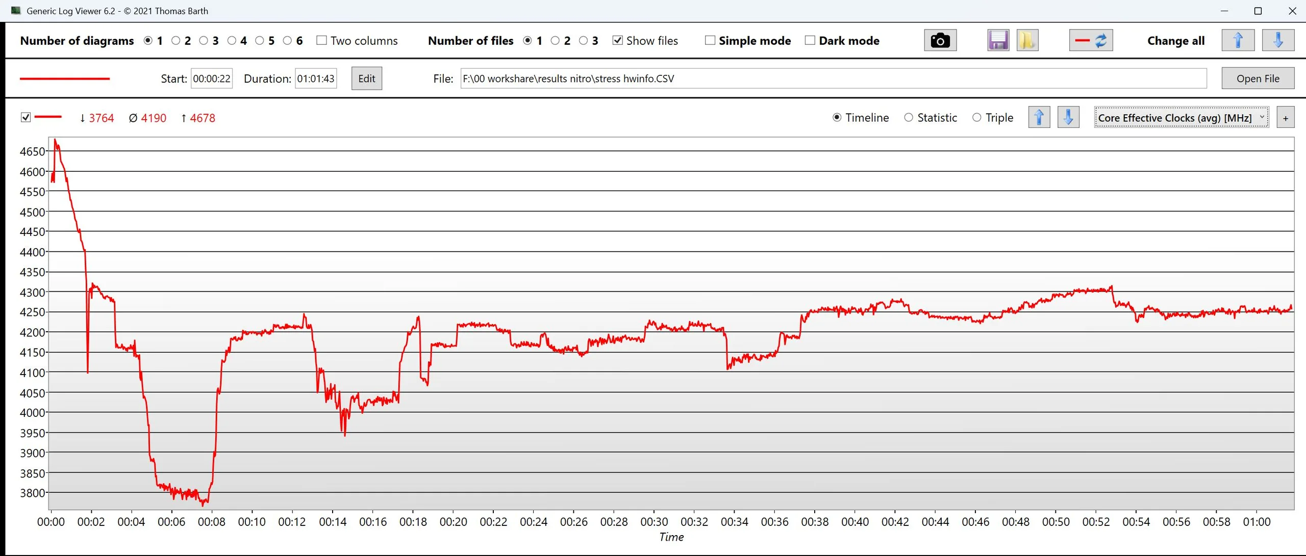 | Clock della CPU (GHz) | Clock della GPU (MHz) | Temperatura media della CPU (°C) | Temperatura media della GPU (°C) | |
