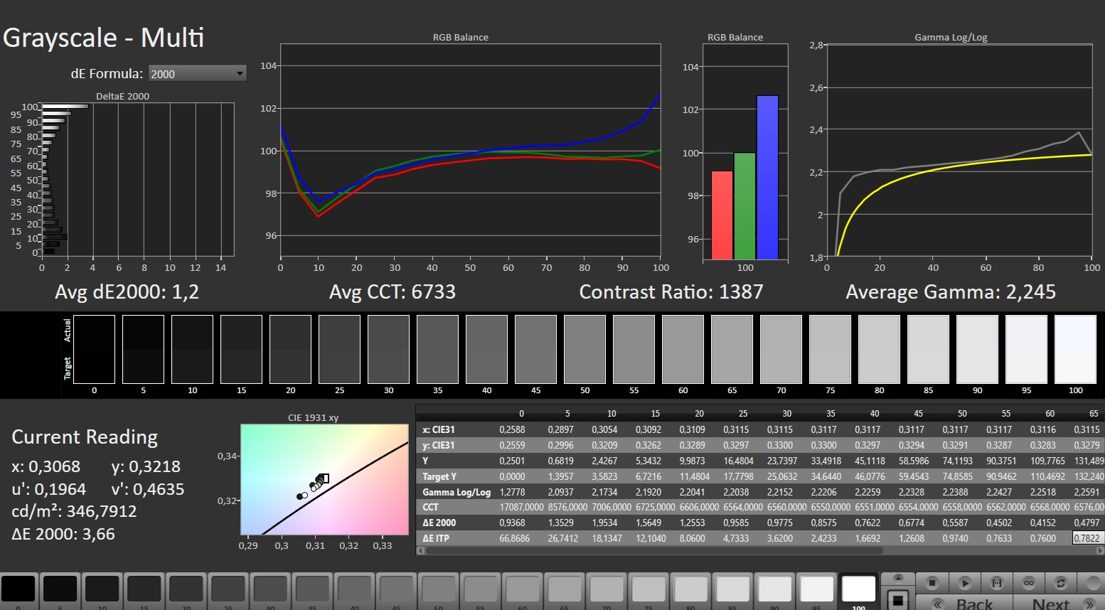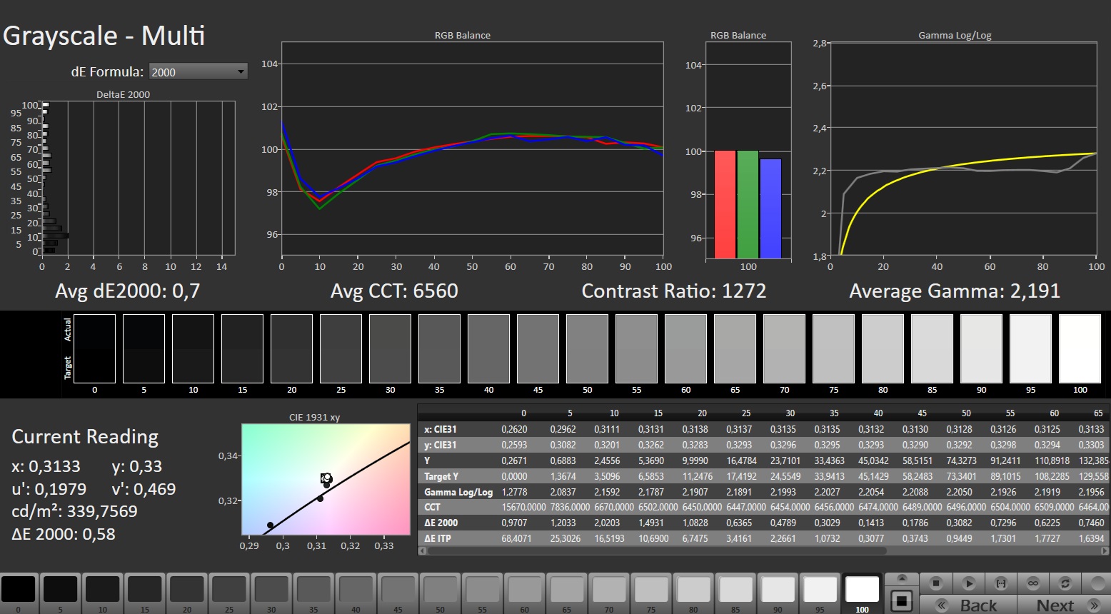 ΔE Greyscale Calman: 1.2 | ∀{0.09-98 Ø5}