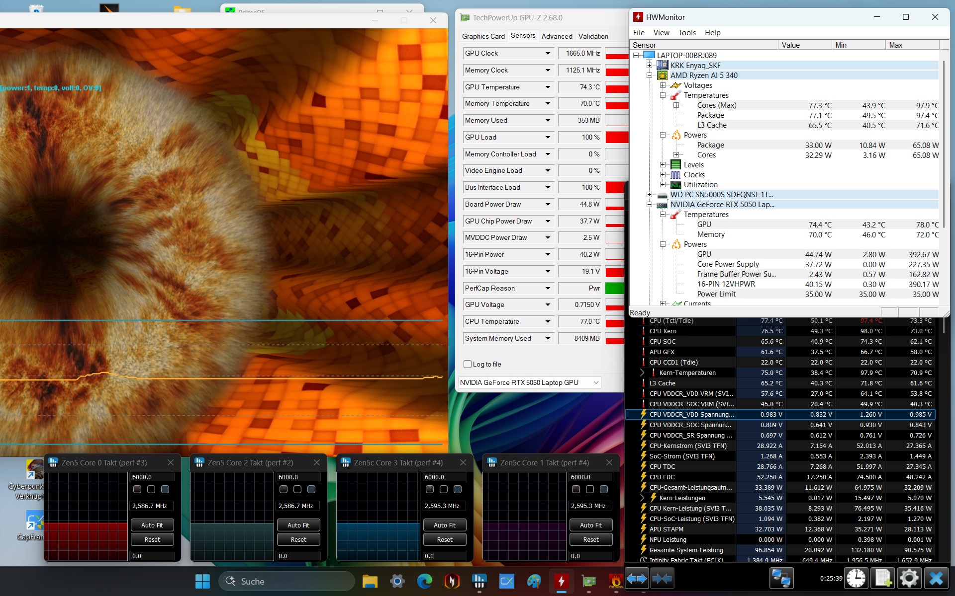 | Acer Nitro V14 AI ANV14-62-R9LT Ryzen AI 5 340, GeForce RTX 5050 Laptop, 76 Wh | Acer Nitro V 16 AI ANV16-42-R860 R5 240, GeForce RTX 5050 Laptop, 76 Wh | HP Victus 15-fa2160ng i5-13420H, GeForce RTX 5050 Laptop, 70 Wh | Lenovo LOQ 15AHP10 R7 250, GeForce RTX 5060 Laptop, 60 Wh | Lenovo Legion 5 15AHP G10 R7 260, GeForce RTX 5060 Laptop, 80 Wh | Schenker XMG Core 15 (M25) Ryzen AI 7 350, GeForce RTX 5060 Laptop, 99.8 Wh | Razer Blade 14 2025 Ryzen AI 9 365, GeForce RTX 5070 Laptop, 72 Wh | Media della classe Gaming | |