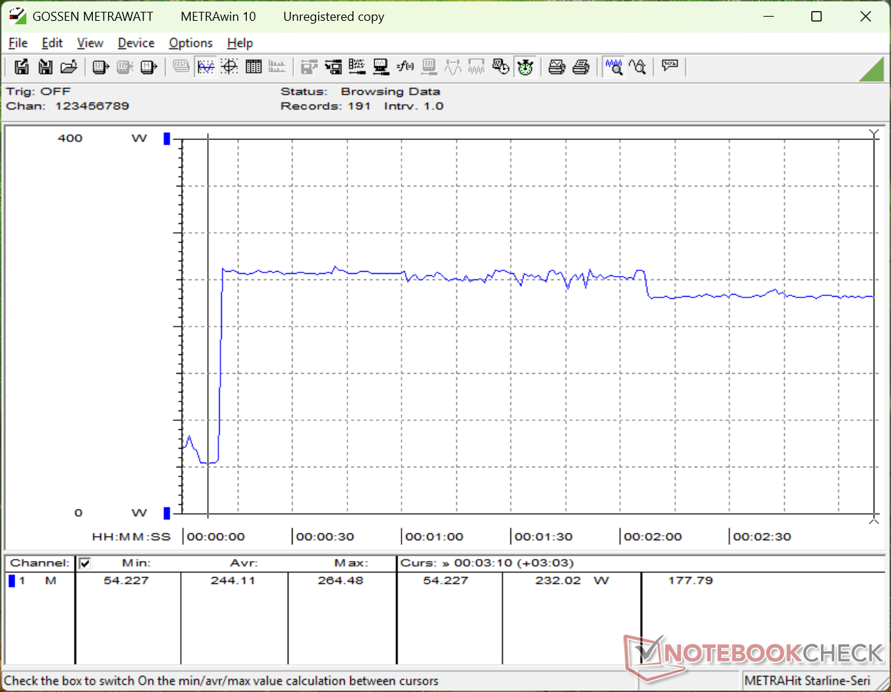 Il Core Ultra 9 290HX Plus è più veloce del 15-25% rispetto al precedente Core Ultra 9 275HX, come già detto. Per pura coincidenza, il nostro Alienware 16 2026 è dal 15 al 25 percento più esigente dell'Alienware 16 2025 quando la CPU è sotto stress. L'esecuzione di Prime95 sull'ultimo modello di Alienware consuma circa 255 W quando il Turbo Boost è più efficace o 230 W quando il Turbo Boost si è stabilizzato, rispetto ai soli 200 W del modello dello scorso anno. Anche quando non si gioca, il modello più recente è generalmente più esigente di almeno qualche watt in più.