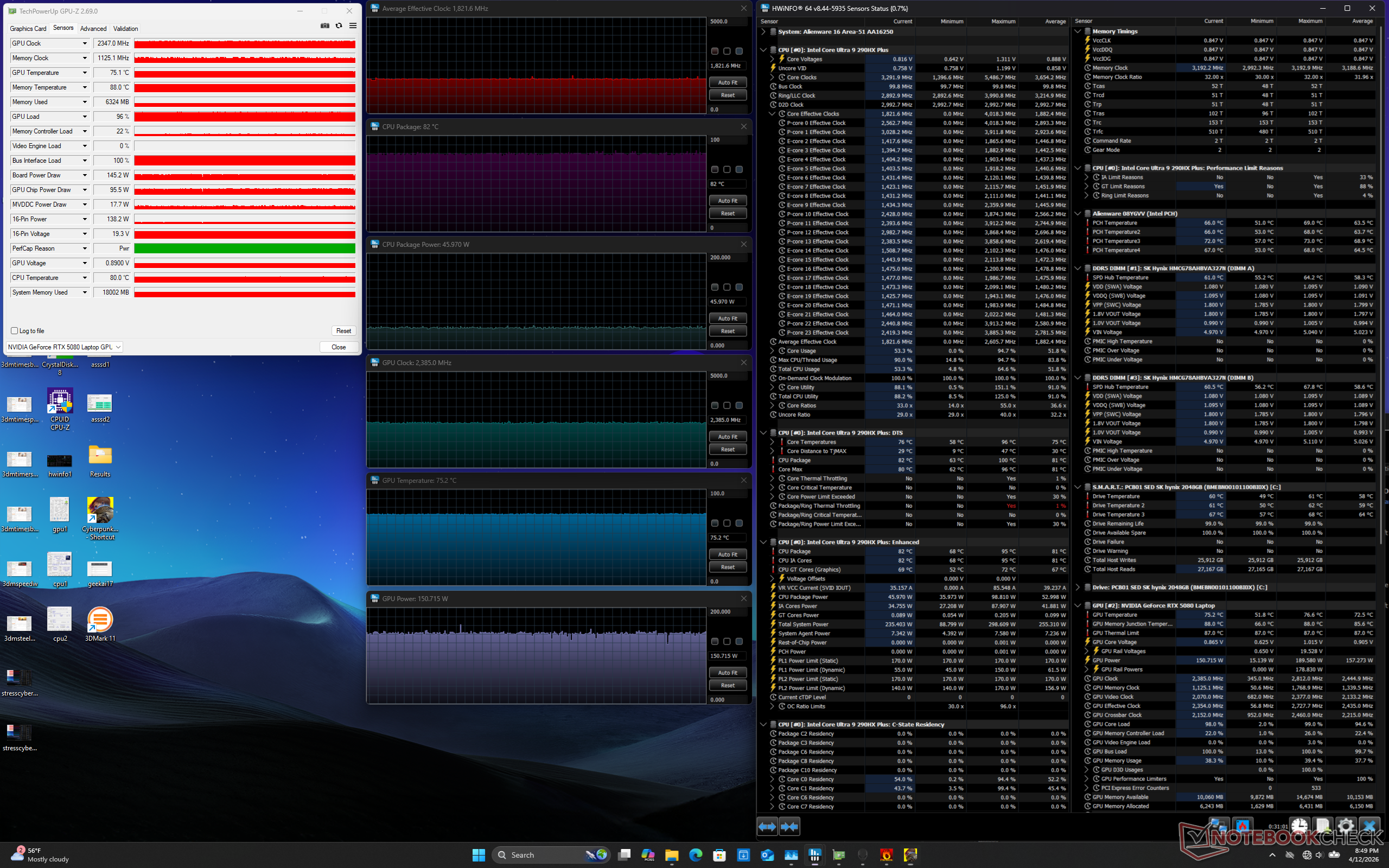 La temperatura della GPU rimarrebbe circa la stessa del modello 2025 quando si esegue Cyberpunk 2077. La temperatura della CPU, invece, sarebbe più calda di qualche grado C, fino a 82 C.