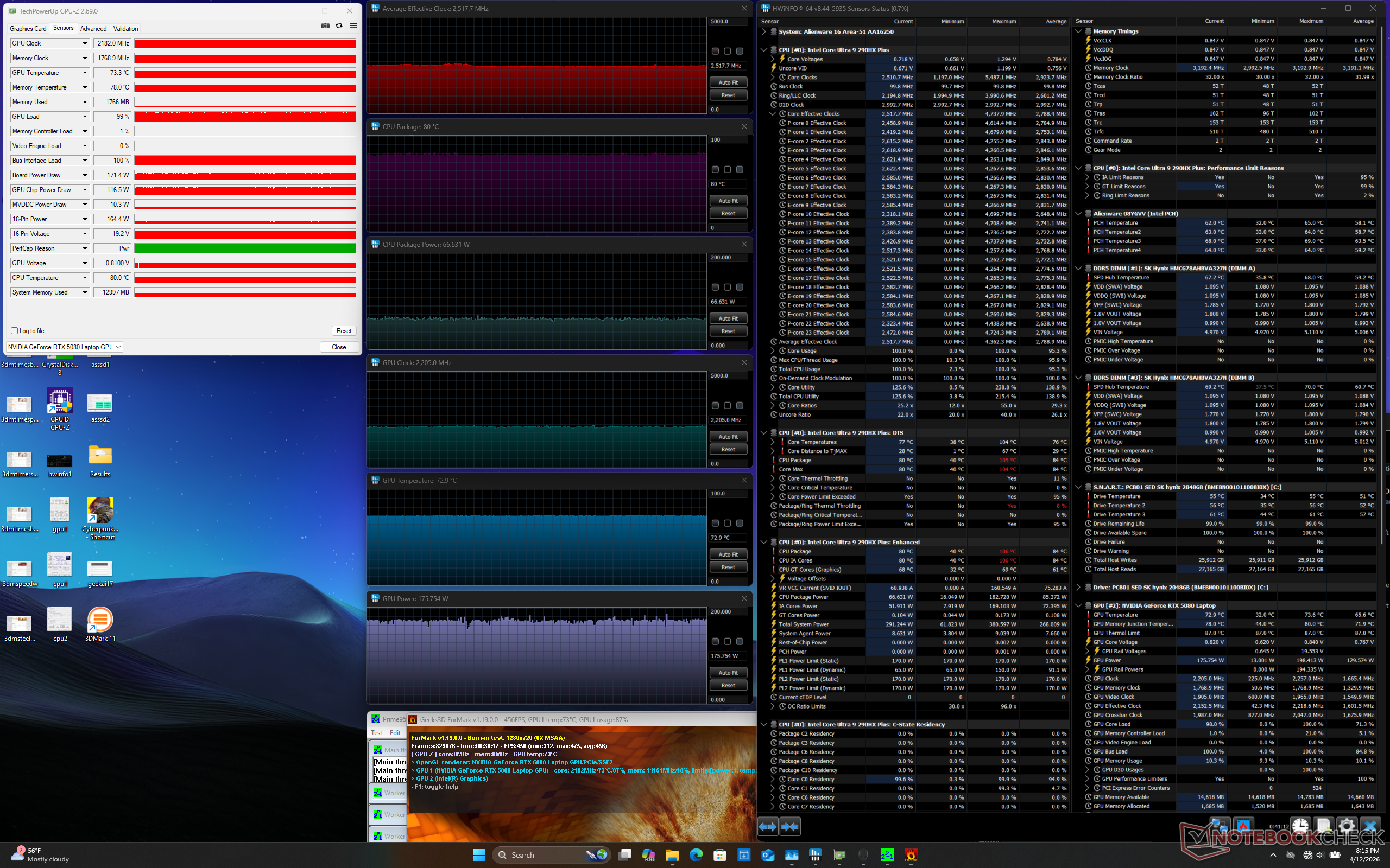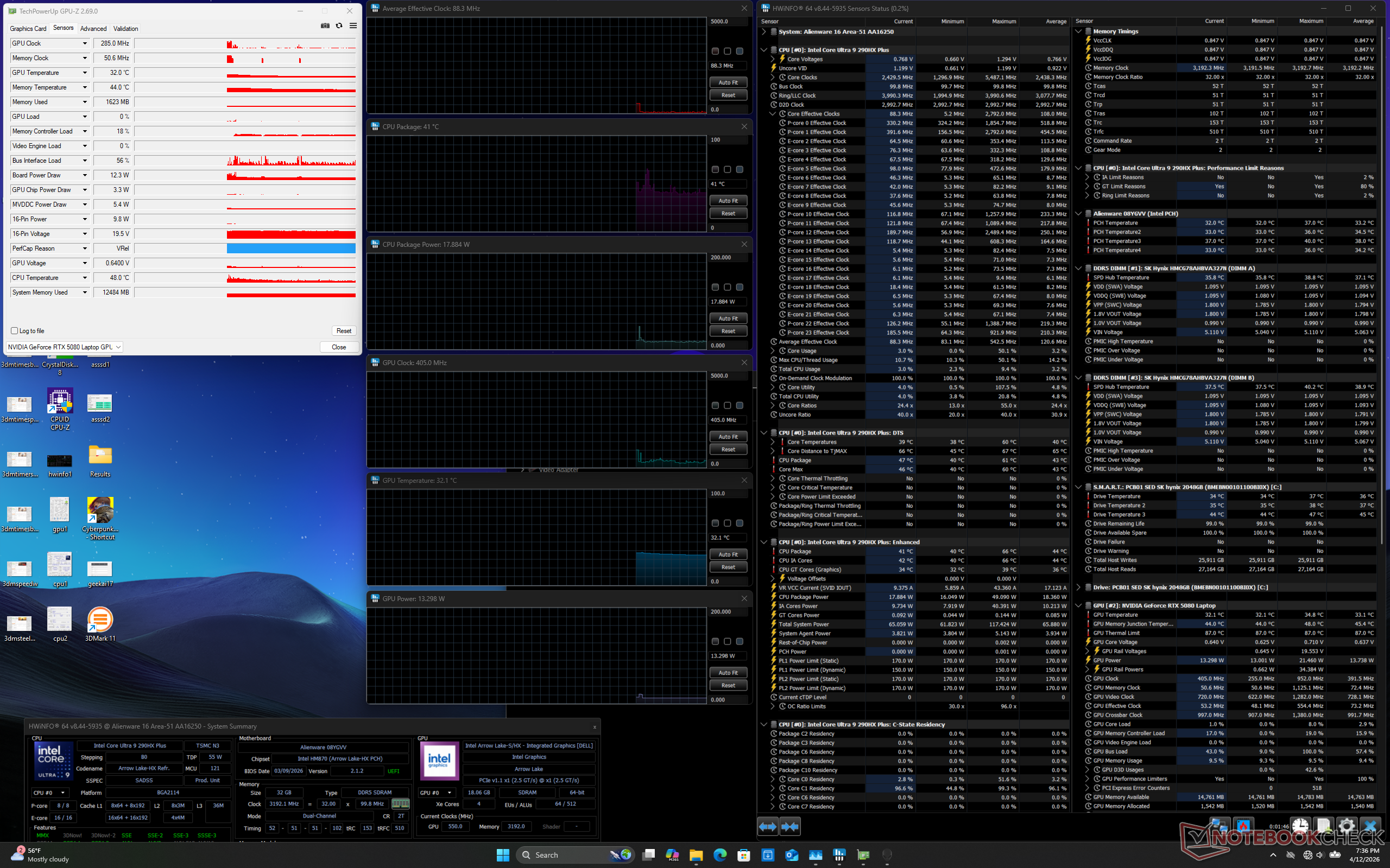 | Alienware 16 Area-51 Core Ultra 9 290HX Plus GeForce RTX 5080 Laptop, SK hynix PCB01 HFS001TFM9X186N, OLED, 2560x1600, 16" | Alienware 16 Area-51 Ultra 9 275HX, GeForce RTX 5080 Laptop, Samsung PM9C1a MZ9L81T0HDLB, IPS, 2560x1600, 16" | Lenovo Legion Pro 7i 16 Gen 10 Ultra 9 275HX, GeForce RTX 5080 Laptop, SK Hynix HFS001TEJ9X115N, OLED, 2560x1600, 16" | HP Omen Max 16 ah000 Ultra 9 275HX, GeForce RTX 5090 Laptop, WDC PC SN810 2TB, OLED, 2560x1600, 16" | MSI Vector 16 HX AI A2XWHG Ultra 7 255HX, GeForce RTX 5070 Ti Laptop, Micron 2400 MTFDKBA512QFM, IPS, 2560x1600, 16" | Asus ROG Zephyrus G16 GU605CW Ultra 9 285H, GeForce RTX 5080 Laptop, Micron 2500 2TB MTFDKBA2T0QGN-1BN1AABGA, OLED, 2560x1600, 16" | |