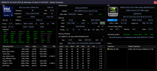 | Alienware 16 Area-51 Intel Core Ultra 9 275HX ⎘ NVIDIA GeForce RTX 5080 Laptop ⎘ 32 GB Memoria, 1024 GB SSD | Prezzo di listino: 3500 USD | 3.3 kg | 28.5 mm | 16.00" 2560x1600 189 PPI IPS | |