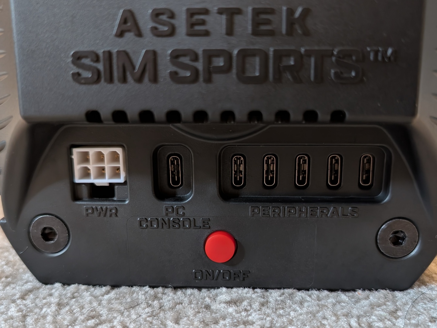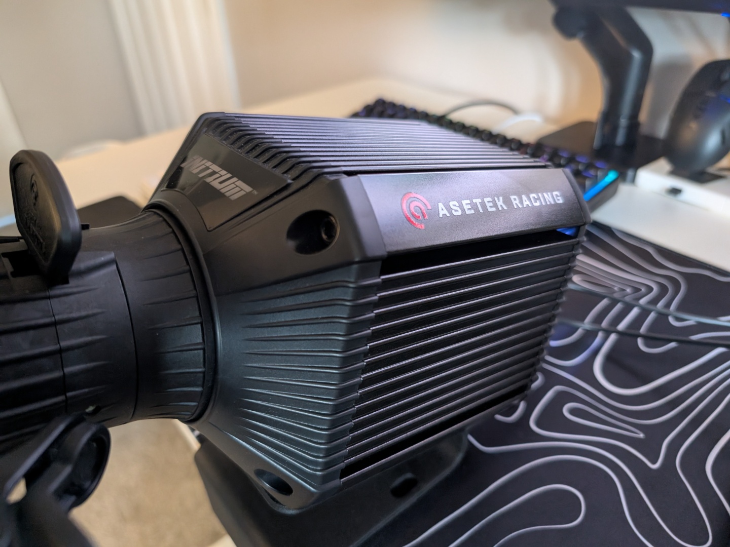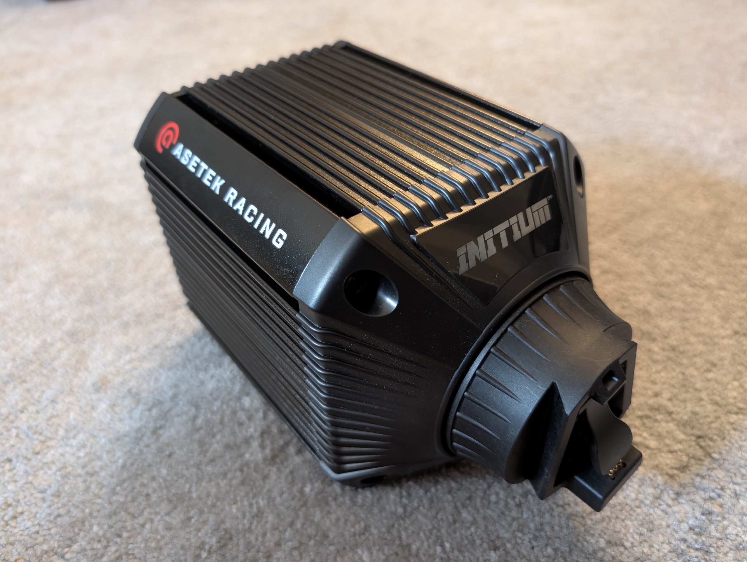 L'interasse in alluminio estruso è piuttosto pesante, con un peso di 5,7 kg, e questo perché ospita fino a 8 Nm di coppia di trasmissione diretta, anche se il pacchetto standard include un adattatore che consente solo 5,5 Nm. Non si tratta di un compromesso, perché è perfettamente in linea con il Moza R5 dal prezzo simile (guardi la nostra recensione) e i bundle Thrustmaster T598-P, oltre al più costoso bundle Fanatec CSL DD QR2. C'è anche un meccanismo di sgancio rapido con cui abbiamo avuto difficoltà all'inizio, ma che è migliorato con il passare del tempo. Il volante si bloccava in posizione e non si staccava facilmente come dovrebbe fare con il "rilascio rapido" Abbiamo contattato Asetek e ci hanno consigliato di dare un colpetto deciso al volante per staccarlo. Questo è apparentemente un problema con le prime connessioni, ma diventa più facile e scorrevole con i tentativi successivi.