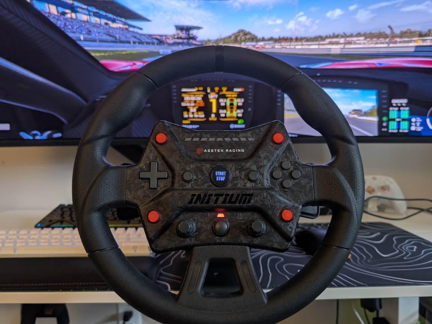 Abbiamo testato il bundle Asetek Initium per circa un mese e lo abbiamo sottoposto alla tipica serie di giochi, tra cui Forza Horizon 5, F1 2025, Dirt Rally 2.0, Project Cars 3 e Assetto Corsa Competizione su PC. A parte Forza Horizon 5, il bundle ha funzionato subito con alcune rimappature nelle impostazioni di gioco. Per qualche motivo, Forza Horizon 5 si bloccava quando il passo Initium era collegato, un problema che non esisteva con il Moza R5 o il Turtle Beach VelocityOne Race KD3 (guardi la nostra recensione). Tuttavia, l'utilizzo di Vjoy e Forza Emuwheel ha risolto questo problema. Altri problemi minori sono il D-pad un po' rigido e i pulsanti retroilluminati, così come i LED dei giri, che non si accendono a meno che non sia stato lanciato RaceHub una volta.