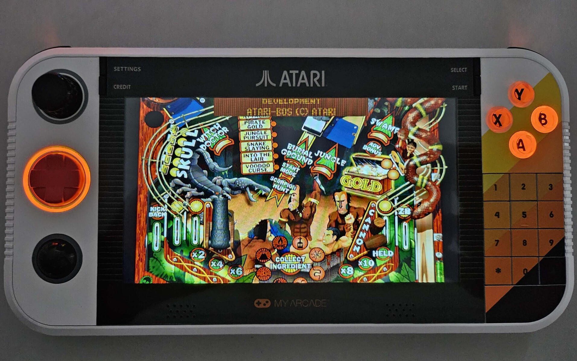 Ogni gioco offre molteplici configurazioni di controllo che possono essere visualizzate e regolate in qualsiasi momento durante il gioco. Una funzione di illuminazione chiamata SmartGlow, sviluppata da Atari e My Arcade, evidenzia a colori quali controlli sono attualmente attivi e richiesti per il gioco selezionato. Il display da 7 pollici (circa 18 cm) è sufficientemente grande per i giochi retro, anche se molti titoli più vecchi non sfruttano appieno lo schermo. Le impostazioni consentono di mantenere il rapporto d'aspetto originale o di allungare l'immagine per riempire il display, anche se quest'ultima opzione introduce naturalmente una distorsione.